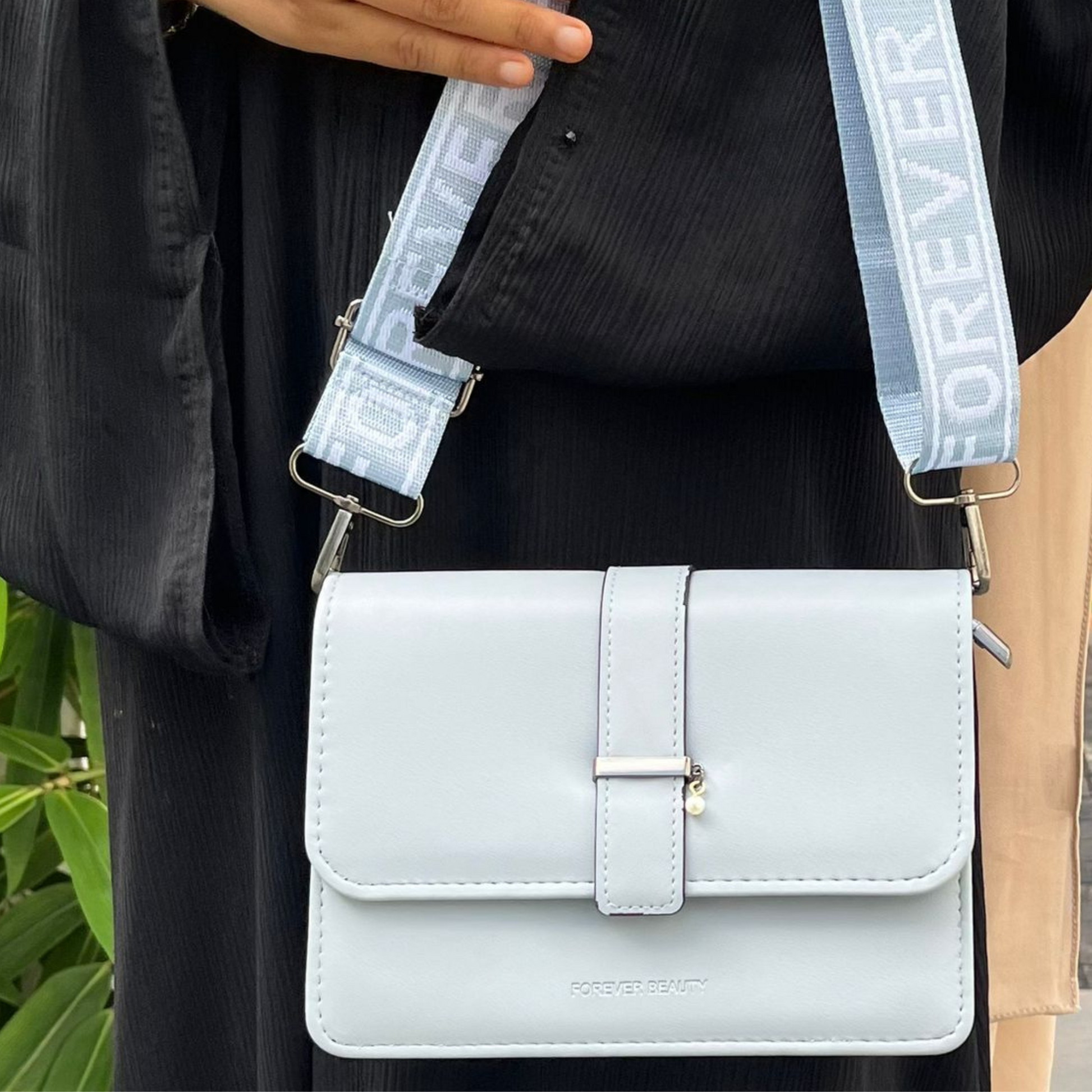 Add charm and elegance to your wardrobe with the Forever Beauty Light Blue PU Leather Sling Bag. Crafted from premium PU leather and designed with a sleek buckle strap accented with a delicate pearl detail, this handbag is a perfect mix of modern style and timeless grace.